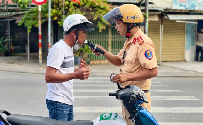 Sau chầu nhậu mừng Tết Dương lịch, nam công nhân ở TPHCM chạy xe máy về nhà và bị CSGT thổi phạt với mức nồng độ cồn kịch khung.