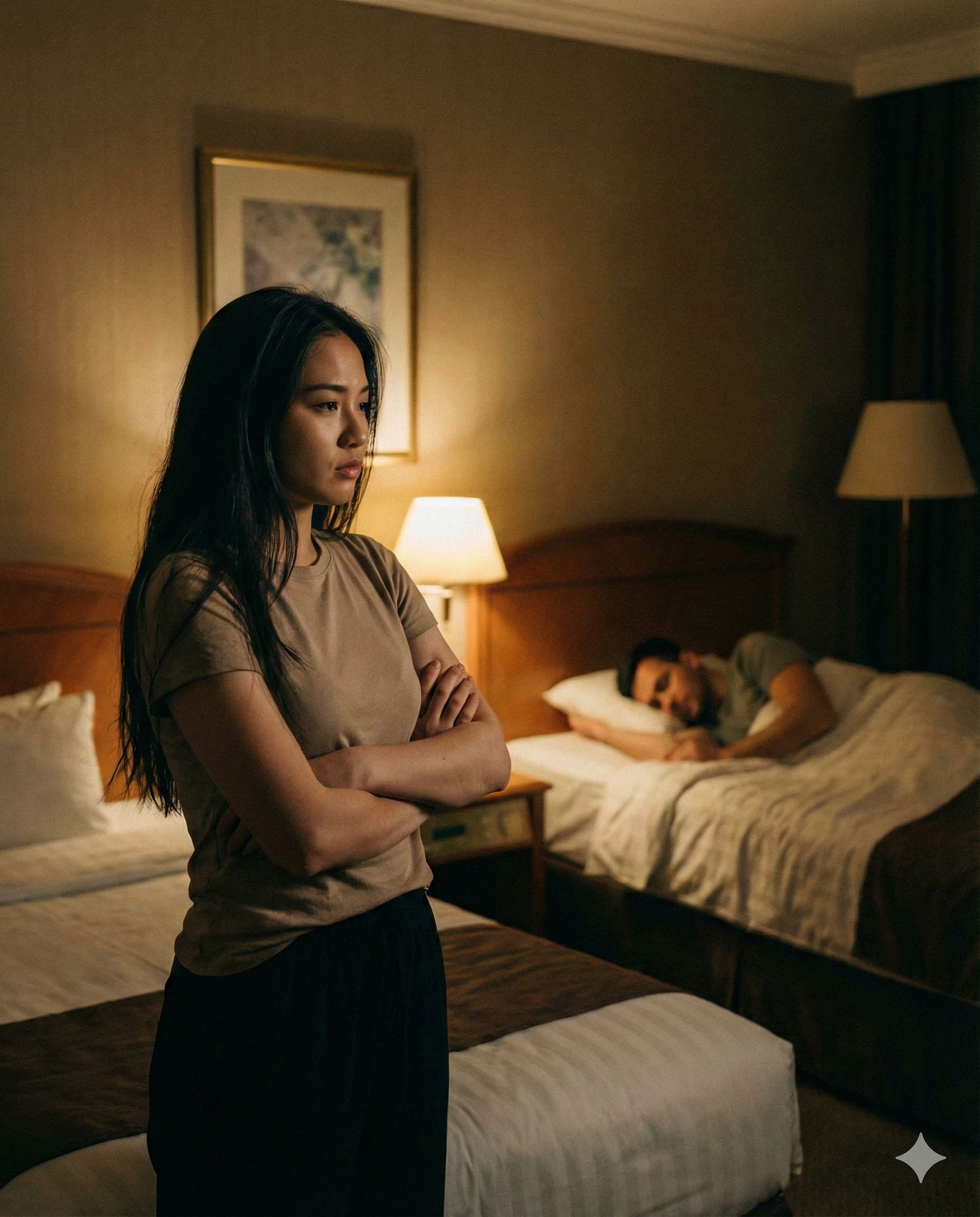 Tôi đã nằm cả đêm trong căn phòng khách sạn ấy, mở mắt nhìn trần nhà loang lổ ánh đèn vàng, mà tâm trí thì rối bời như chiếc đồng hồ hết pin. Chỉ cách vài bước chân, người đàn ông tôi yêu đang ngủ say sưa, hơi thở đều và chậm, bình yên đến lạ. Còn tôi, không tài nào chợp mắt được, chỉ vì một điều: chúng tôi qua đêm cùng nhau… nhưng lại nằm ở hai chiếc giường riêng biệt.