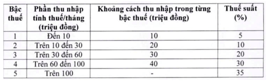 Bậc 5: trên 40 triệu (với các mức thuế tương ứng)