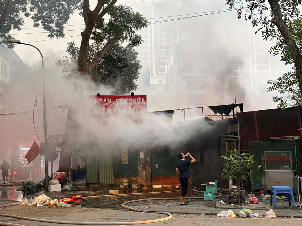 Phía ngoài khu chợ, hàng chục tiểu thương đứng dõi về phía đám cháy. Một số người bật khóc khi chứng kiến ki-ốt của mình bị thiêu rụi, đối mặt nguy cơ mất trắng toàn bộ vốn liếng.
