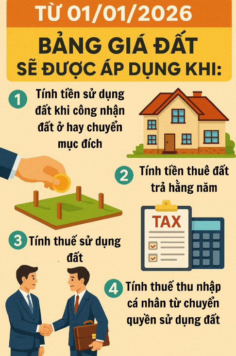 Từ 1/1/2026: 11 trường hợp bắt buộc áp dụng bảng giá đất mới