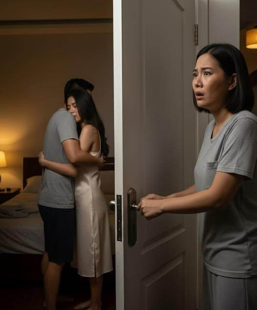 Khi cánh cửa phòng tắm mở ra, Hân bước ra, trên người chỉ quấn khăn tắm. Dù đã lâu không
