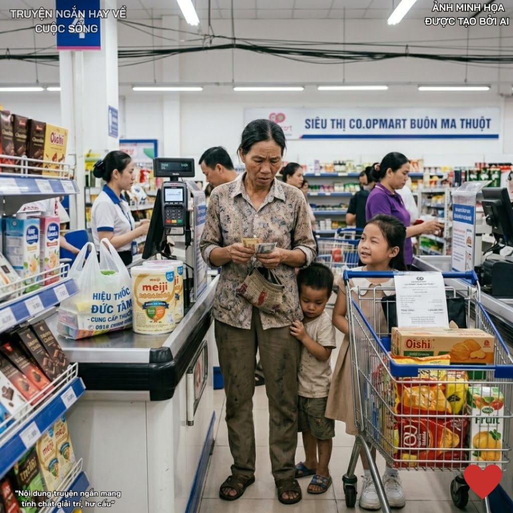 Một đứa trẻ con nhà giàu đi siêu thị, cố tình làm rơi những hộp sữa, gói bánh xịn đã