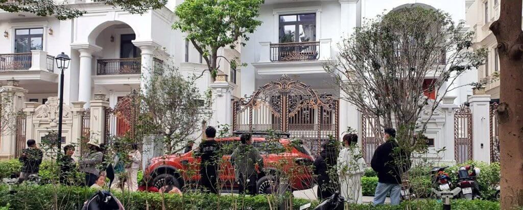 Hàng chục người lao động tập trung trước biệt thự của bà Hoàng Hường tại Hà Nội để đòi tiền
