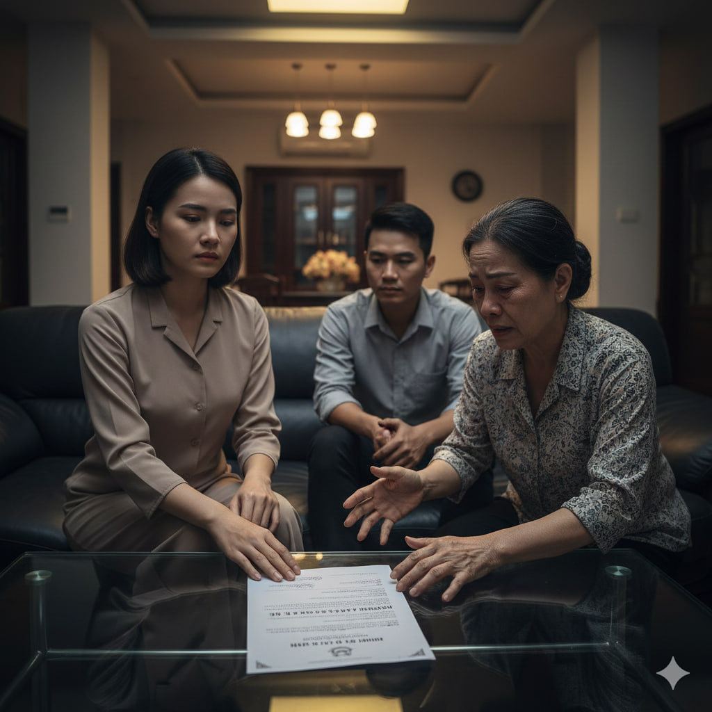 Đây là giấy ᴋʜướᴄ ᴛừ ᴛàɪ sảɴ thừa kế, con ký đi. Nhà này không muốn sau này có ᴛʀᴀɴʜ ᴄʜấᴘ ʟằɴɢ ɴʜằɴɢ.