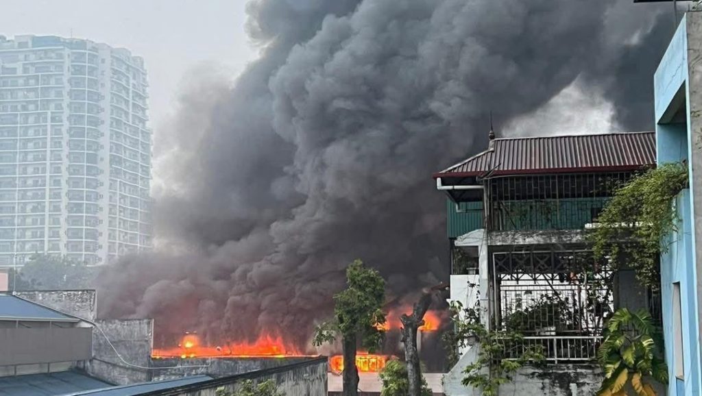 Một vụ cháy nhà máy bia xảy ra sáng 1/12 tại khu vực Hoàng Hoa Thám, khiến cột khói đen
